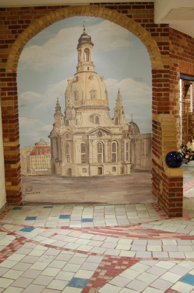 Illusionsmalerei erzeugt räumliche Eindrücke  von Gebäuden oder Landschaften auf einer ebenen Flächen mit malerischen Mitteln